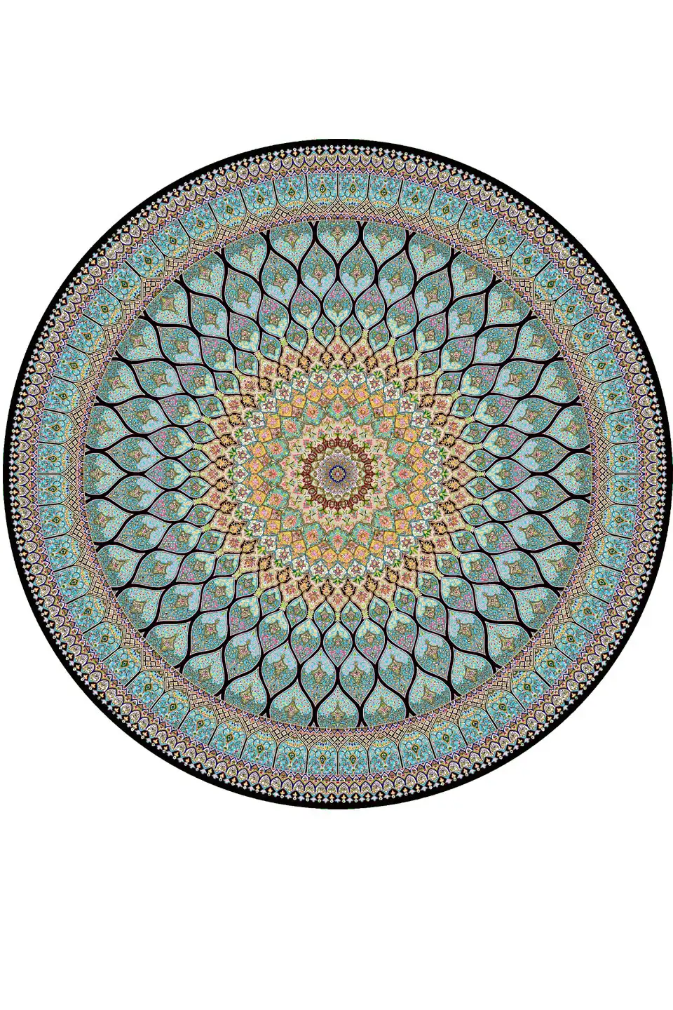 فرش ابریشم ماشینی گرد آبی