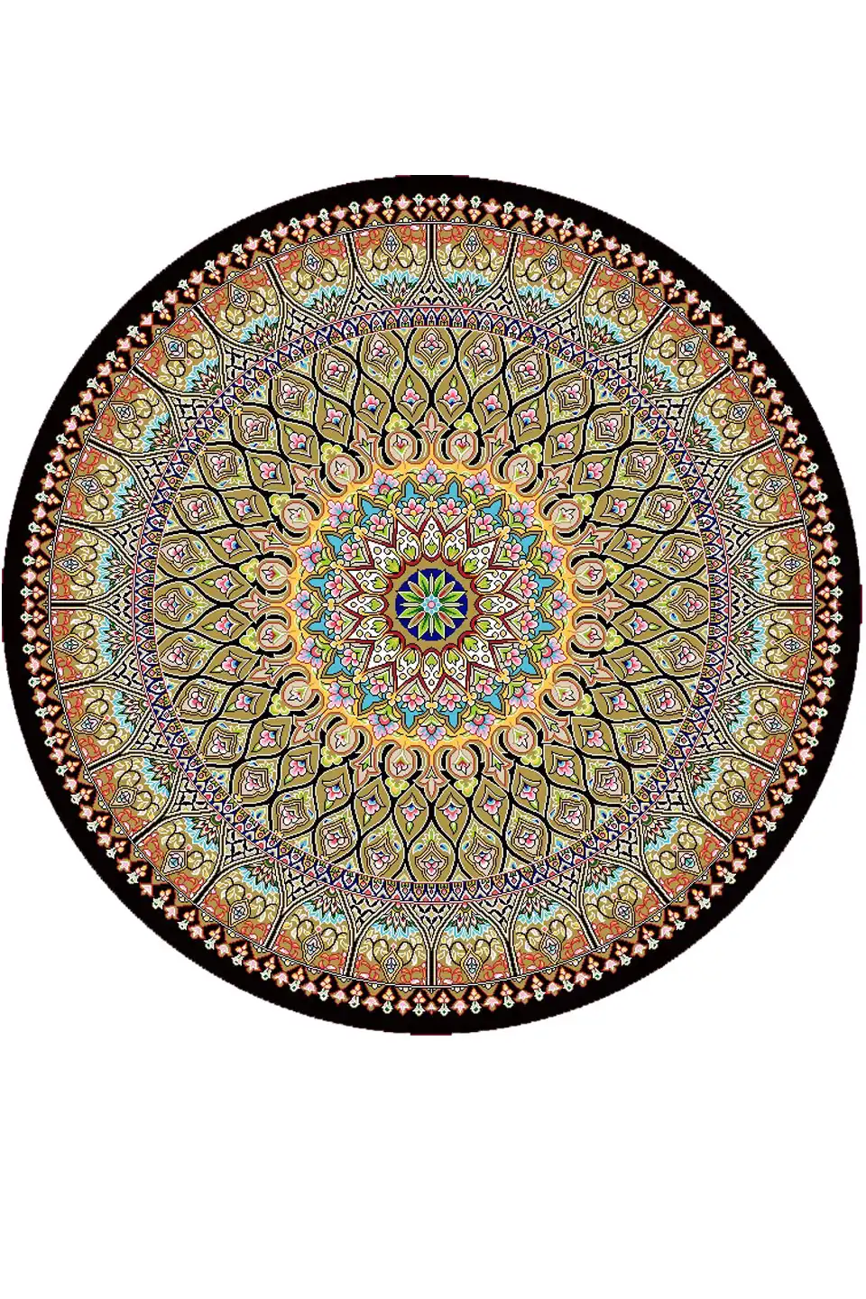 فرش ابریشم ماشینی گرد مشکی