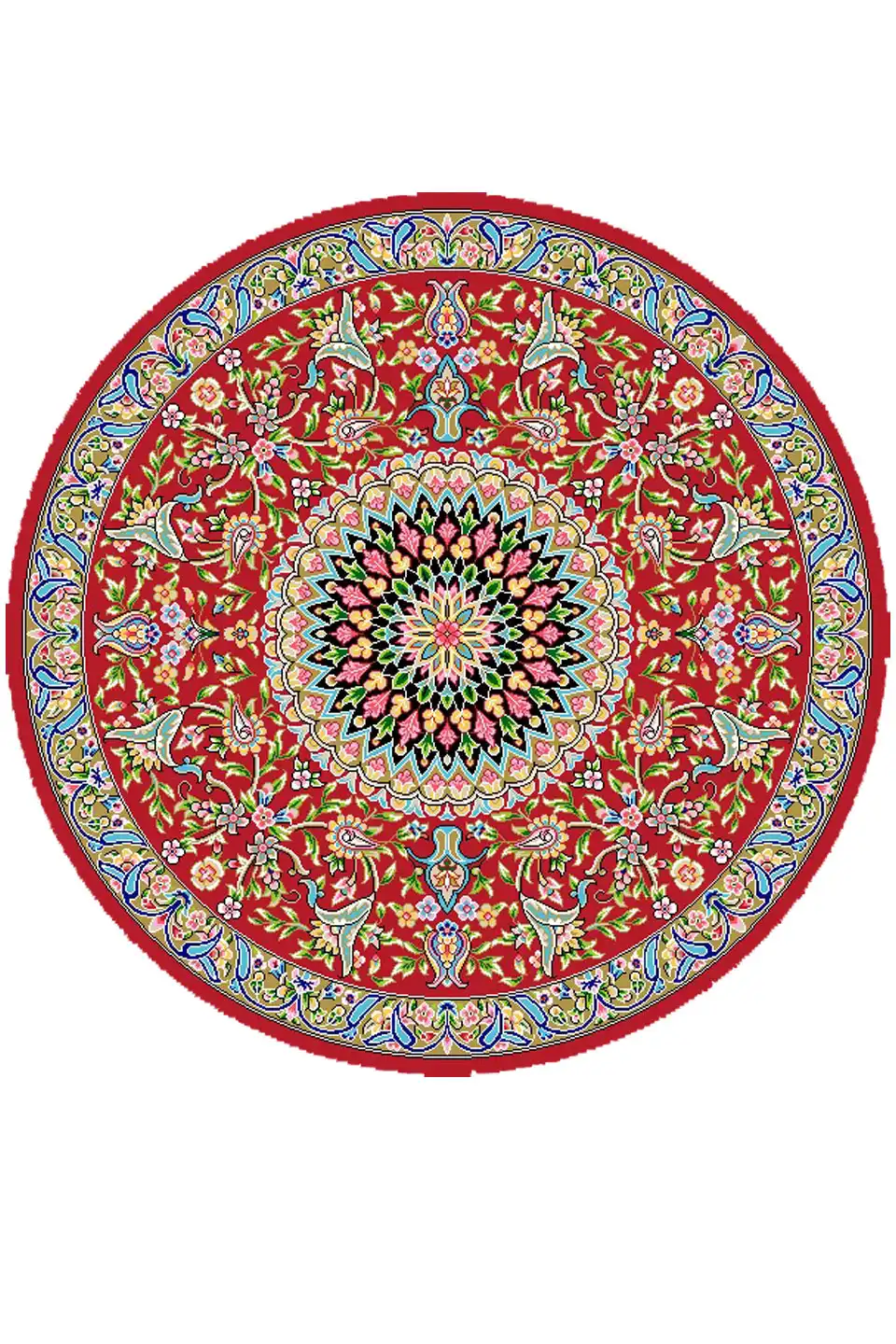 فرش ابریشم ماشینی گرد لاکی
