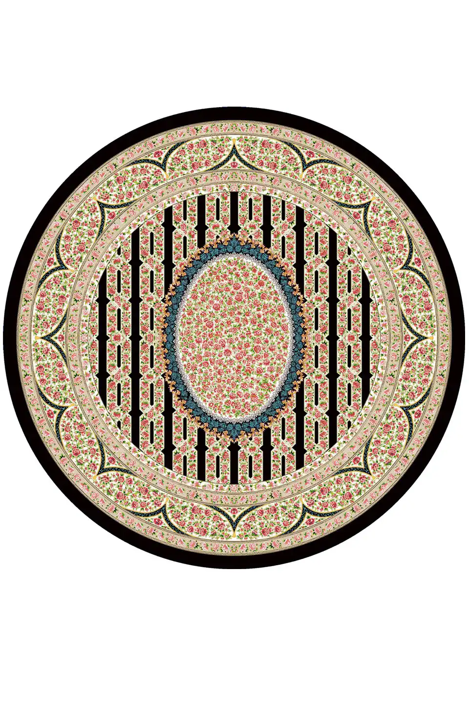 فرش گرد ابریشم ماشینی 1600 شانه