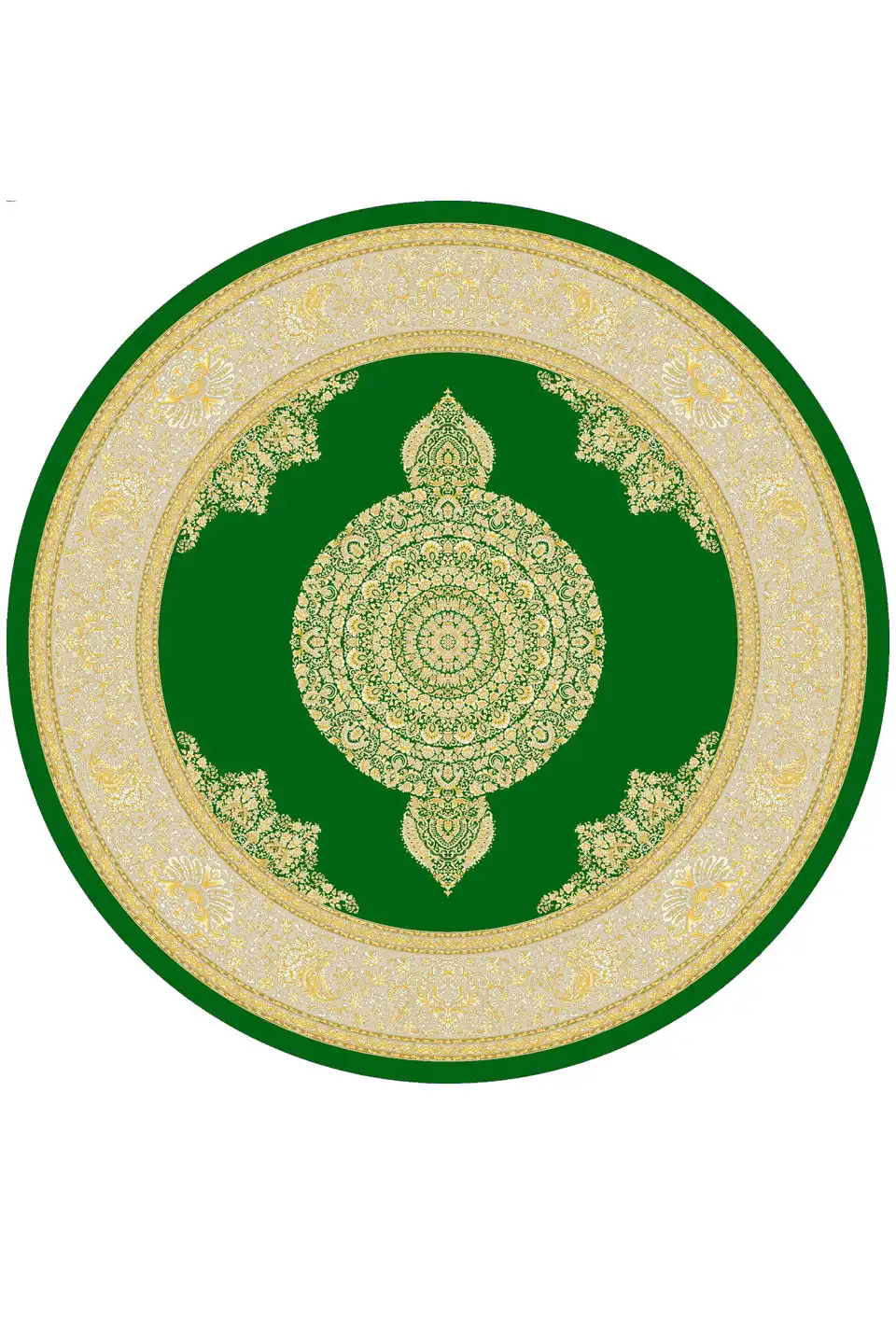 فرش ابریشم گرد نقشه ورساچه سبز 16004