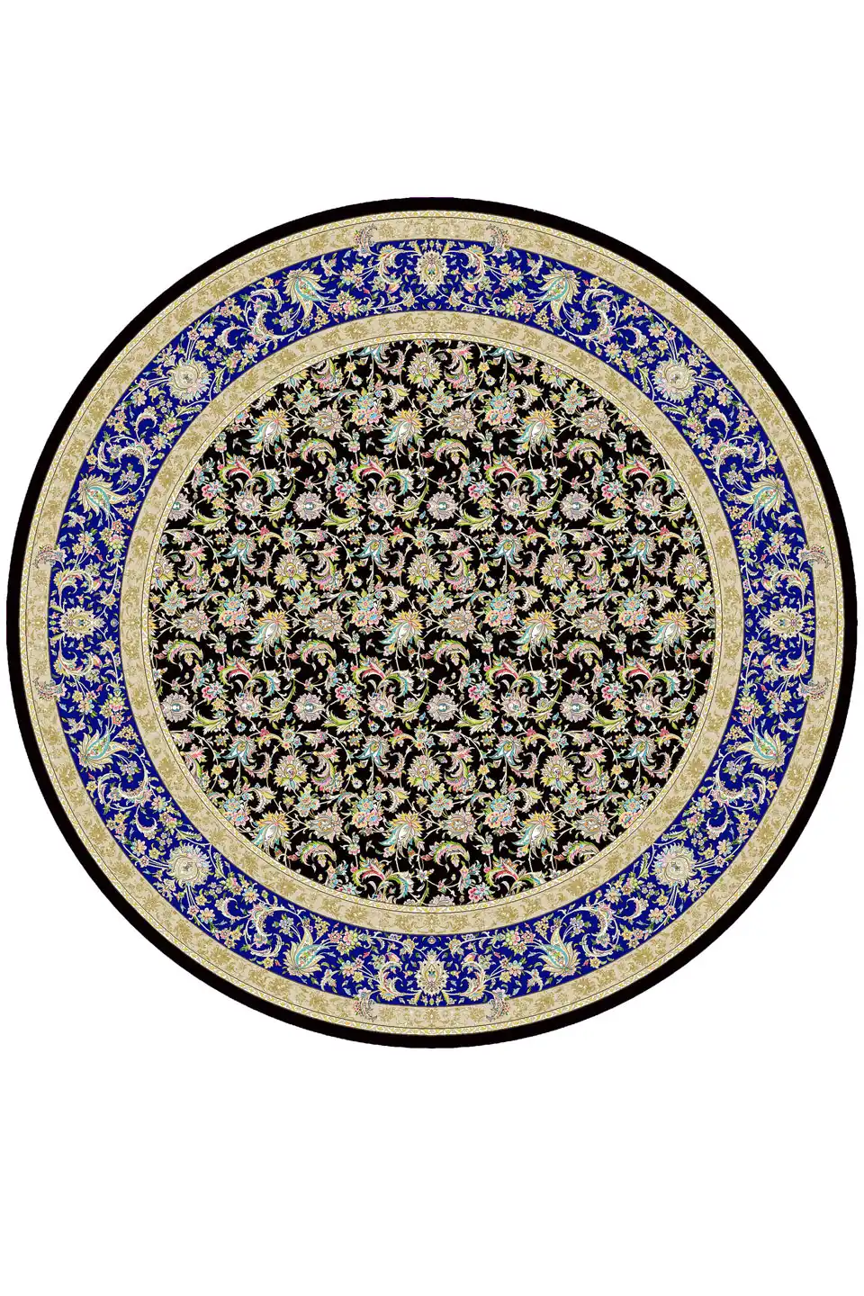 فرش ابریشم گرد طرح افشان 16009 مشکی