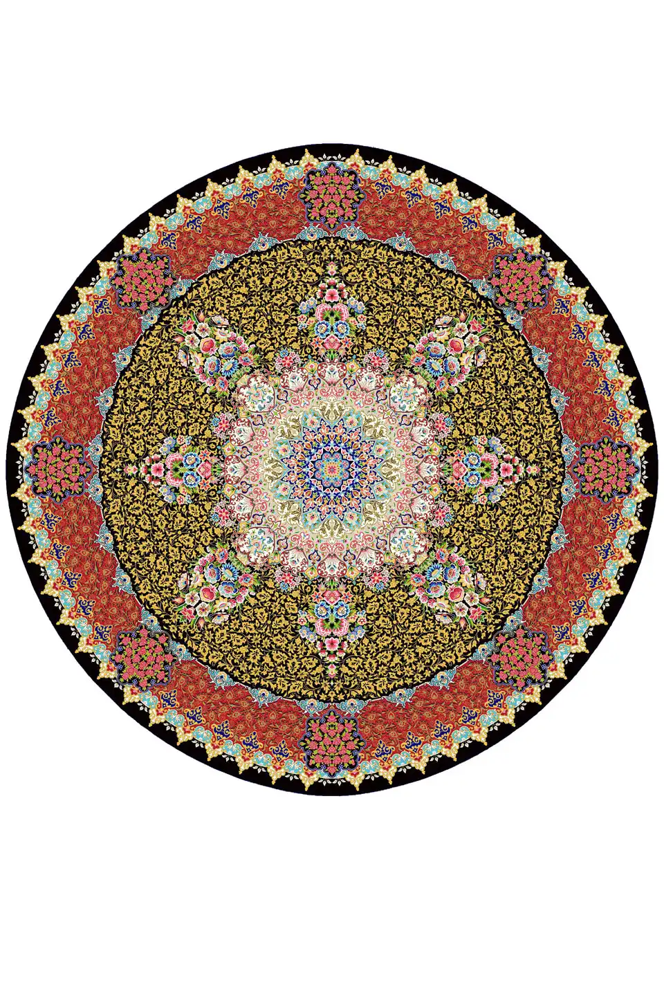 فرش ابریشم ماشینی گرد مشکی